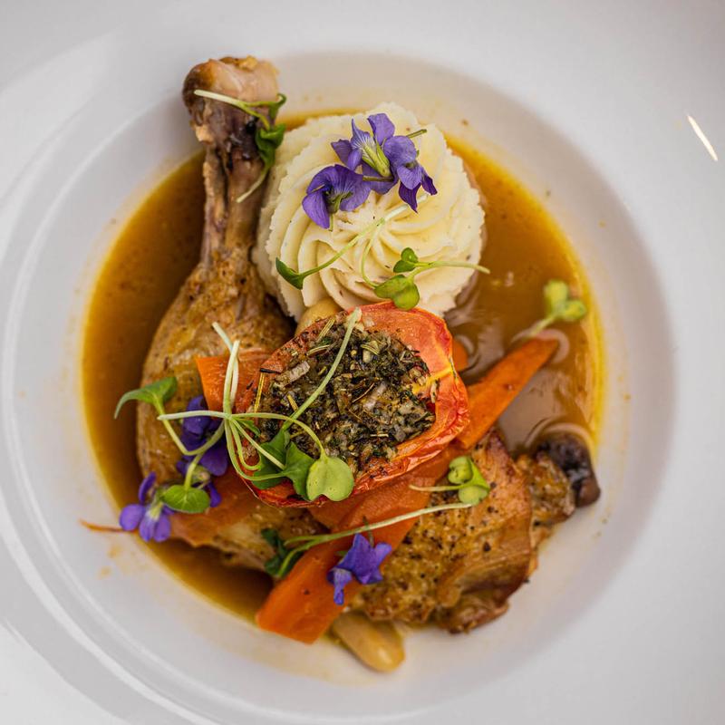 Specialty cocktails include the Sabrina V. The People, which mixes apple-infused rye with sherry, sage, honey, and lemon. Non-alcoholic beverages and mocktail options are also featured on the menu, ensuring everybody has something delightful to sip on. Dive into the main menu, with protein options ranging from beer-battered cod with roasted fingerling potatoes to the Little Mountain Ranch pork chop with a sweet potato puree, braised lentils, and roasted cauliflower. The lamb shank has been braised with tomatoes and is plated with confit sweet potatoes, sugar snap peas, and white beans.